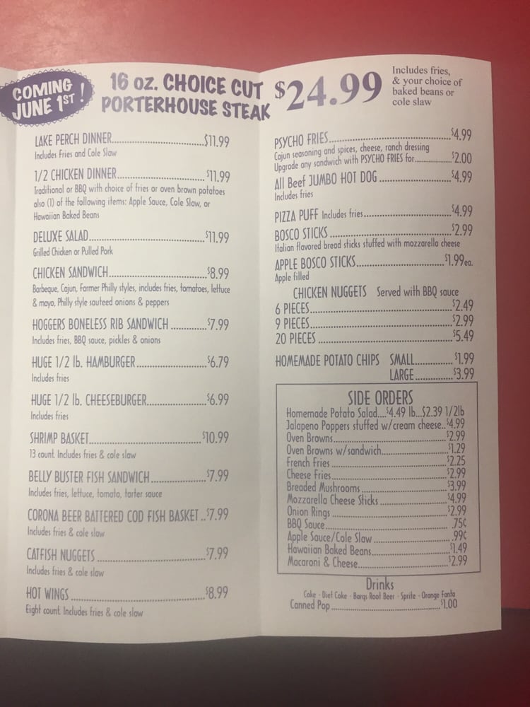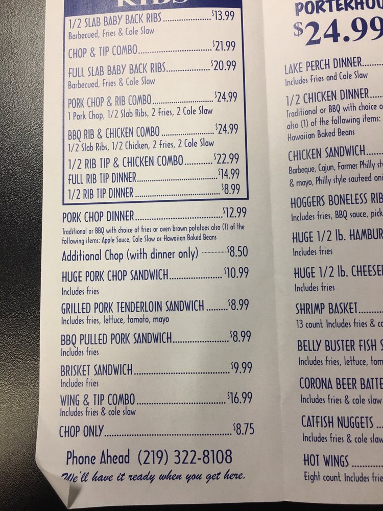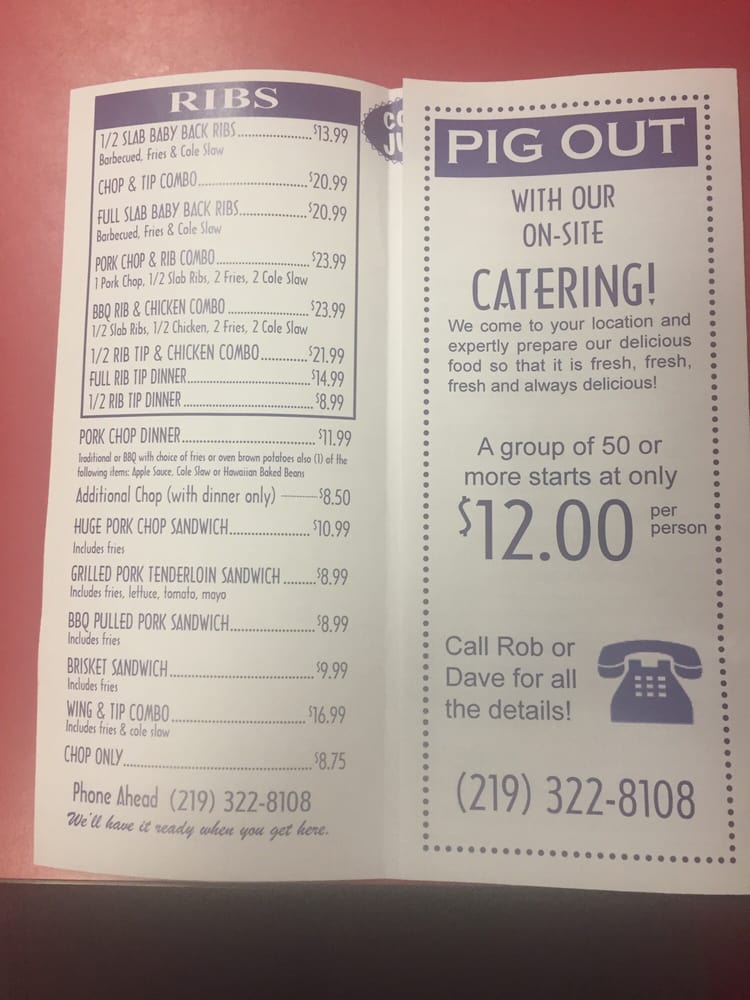 The menu boasts a variety of tantalizing options, from the fall-off-the-bone Baby Back Ribs served with crispy fries and slaw, to the massive Huge Pork Chop Sandwich that’s sure to satisfy your hunger. Don’t miss the Pork Chop Dinner, offering traditional or BBQ flavors alongside your choice of sides.